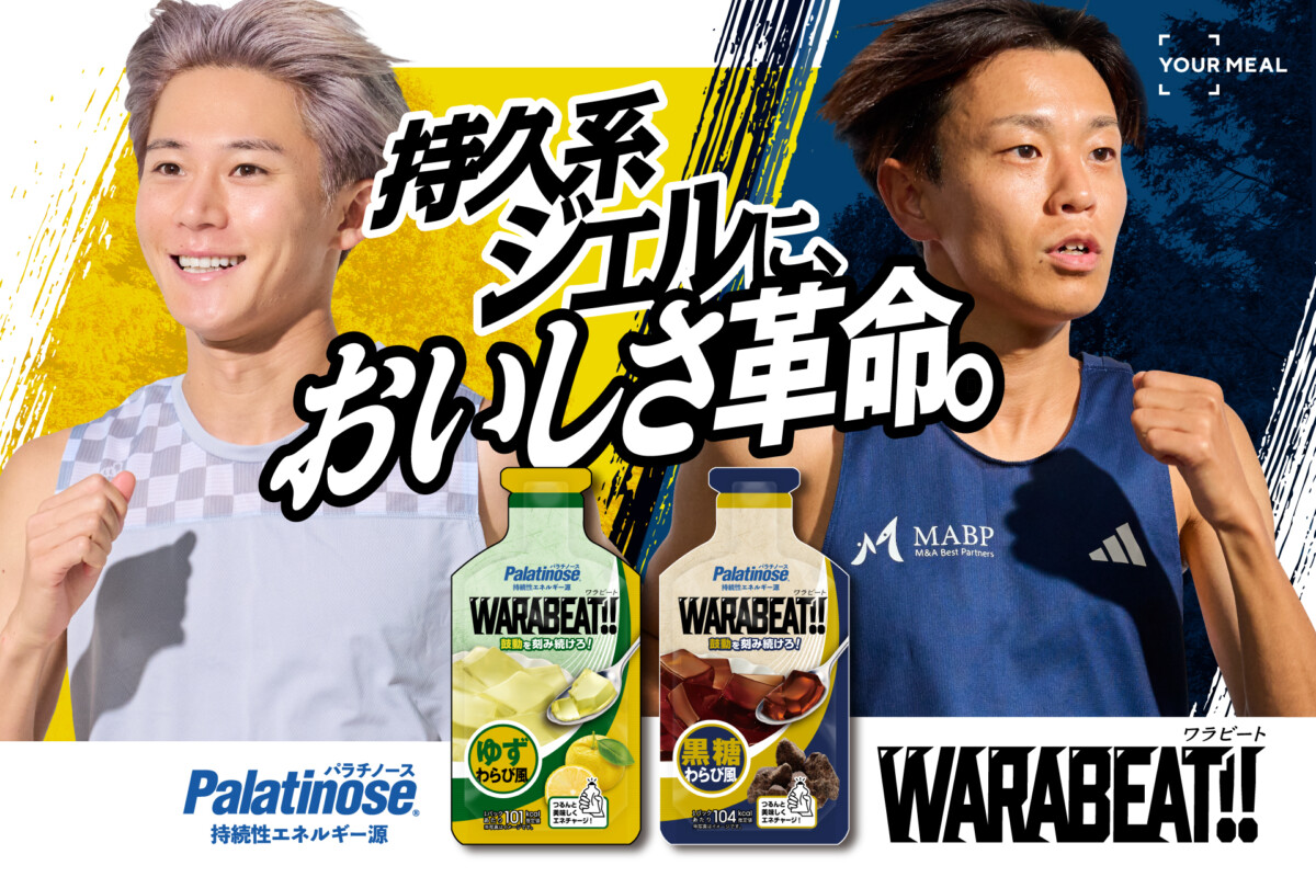 DM三井製糖株式会社は、持続性エネルギー源「パラチノース®」を配合したエナジージェル「WARABEAT!!(ワラビート)」(黒糖わらび風/ゆずわらび風)を、グループ会社の株式会社YOUR MEALより2025年10月1日(水)に発売するとのこと。ブランドムービーは同日より公式YouTube等で公開されるらしい。