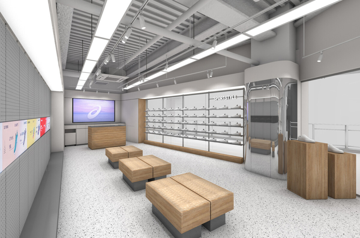アシックスが掲げる“製品・サービス・空間のシームレスな融合”を体現した設計で、機能性と上質感の両立を目指した。