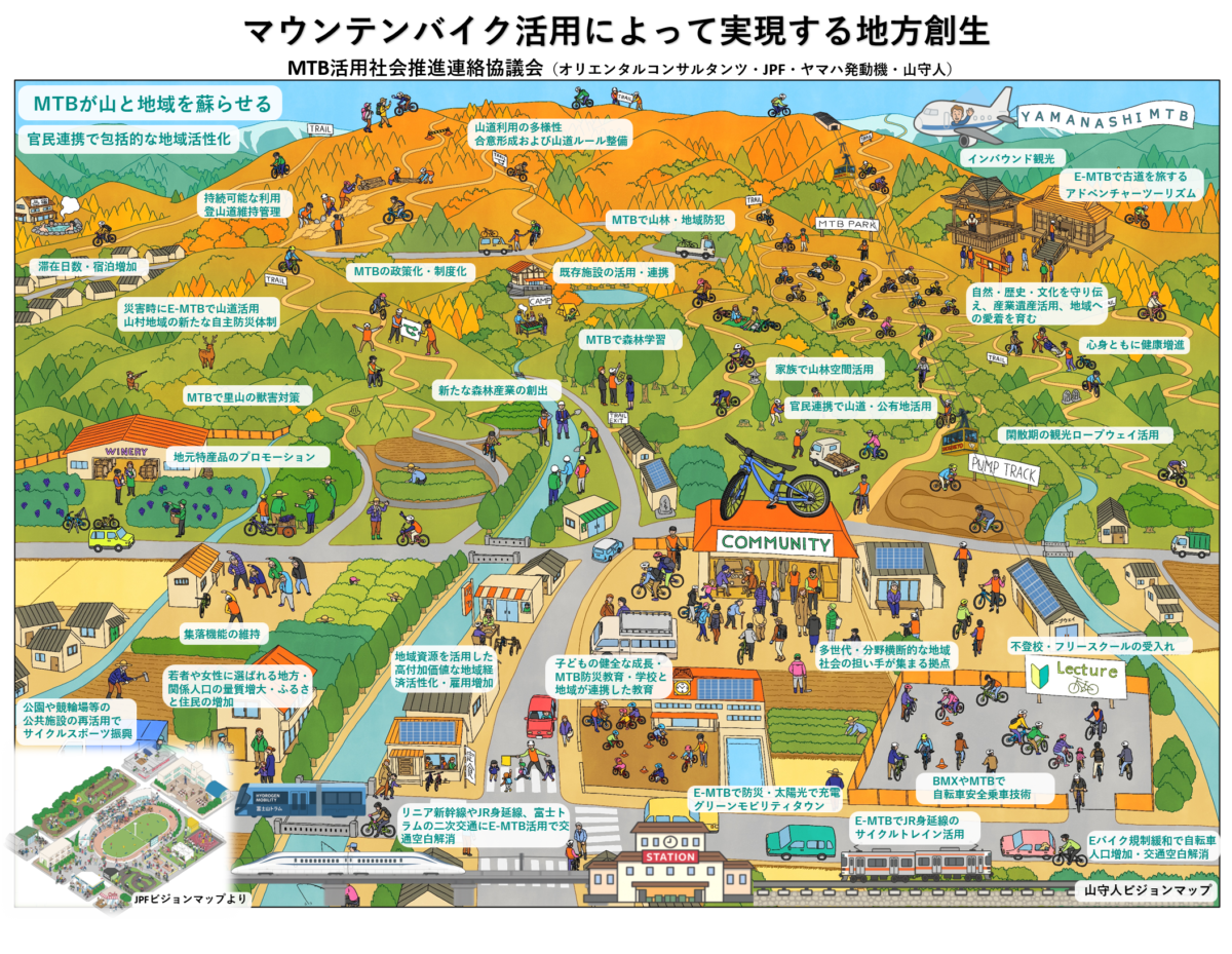 こうした課題を背景に、オリエンタルコンサルタンツ株式会社、株式会社JPF、ヤマハ発動機株式会社、一般社団法人山守人/株式会社山守人の4社が連携し、**「MTB活用社会推進連絡協議会」**を2025年5月11日に発足しました。