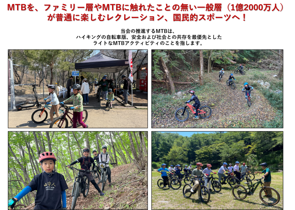 本協議会は、MTBを“レジャー”の枠を超えた社会的資源として捉え、日本各地の山道・森林空間を未来につなぐための政策提言や先進事例づくりを推進します。