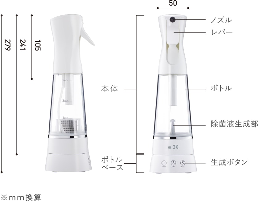 目に見えない細菌やウイルスから大切な人を守り、毎日衛生的で健康な生活をおくるために、簡単で効果的な除菌液を家庭でつくれるアイテム、e-3X(イースリーエックス)。